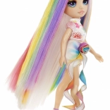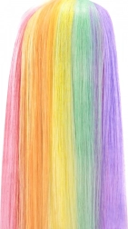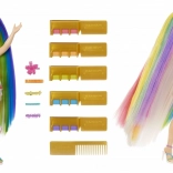 Păpușa are păr excepțional de lung, neted, cu șuvițe curcubeu, care se piaptănă ușor, se împletesc și se modelează în stiluri variate – de la onduleuri și împletituri până la linii colorate îndrăznețe.