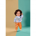 Oferă-i păpușii sau ursulețului o ținută nouă și proaspătă, care evocă vara și buna dispoziție. Tricoul în dungi cu imprimeu de palmier și soare este completat de pantaloni portocalii cu talie confortabilă. Setul este realizat din textile plăcute, pentru ca îmbrăcarea și joaca să fie cât mai confortabile.