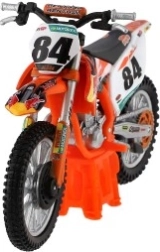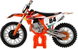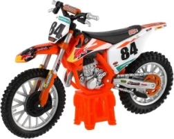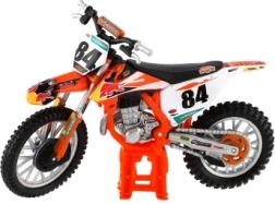 Modelul reproduce fidel detaliile realiste ale unei motociclete de motocross veritabile, inclusiv elementele de design și componentele funcționale precum roțile și ghidoanele.