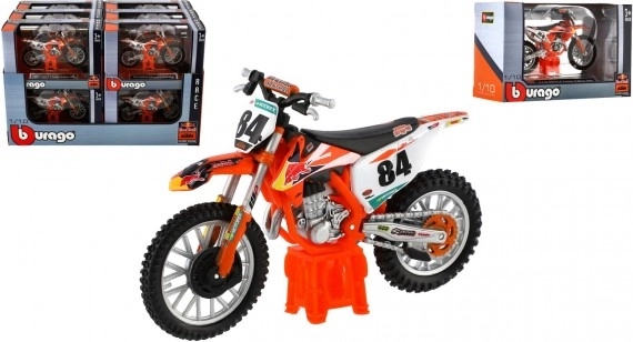 Pentru iubitorii de motociclete și colecționari, marca Bburago aduce un model detaliat de motocicletă KTM 450 SX-F Factory Edition 2018 la scară 1:18. Acest model este ideal atât pentru joacă, cât și pentru expunere în cadrul unei colecții.