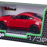 Replica fidelă a legendarului FORD SHELBY GT500 de la Bburago, la scara 1:32, impresionează prin proporții realiste, linii ascuțite ale caroseriei și vopsea de calitate cu dungi de curse. Datorită combinației de metal și plastic, modelul este robust, păstrând totodată detalii fine precum farurile, grila sau jantele.