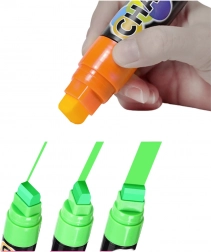 Datorită designului ergonomic, markerele se țin confortabil în mână și permit scriere precisă și desen detaliat. Cerneala se poate șterge cu o cârpă umedă de pe suprafețele neporoase, astfel că modificarea textelor sau decorurilor se face imediat – ideal pentru meniuri pe tablă, vitrine, planificatoare și creații pentru copii.