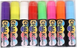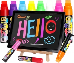 Acest set de 8 markere cu cretă oferă culori intense, uniforme și o aplicare lină, fără urme. Markerele funcționează excelent pe table, sticlă, ceramică, table LED și alte suprafețe neporoase, unde creează inscripții și decorațiuni vizibile și durabile. Uscarea rapidă minimizează bavurile și accelerează lucrul.
