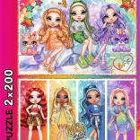 Aceste puzzle-uri stilate îi vor încânta pe toți fanii seriei RAINBOW HIGH. Într-un singur pachet găsești două imagini separate a câte 200 de piese, astfel încât distracția este asigurată pentru mai multe seri. Datorită decupajului precis și culorilor intense, piesele se potrivesc excelent, iar imaginile finale arată minunat.