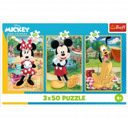 Descoperă magia asamblării cu un pachet care oferă trei puzzle-uri diferite a câte 50 de piese. Fiecare motiv aduce o atmosferă veselă de vacanță cu personajele iconice Mickey Mouse, Minnie și Pluto. Ideal pentru asamblare împreună cu frații sau prietenii.