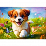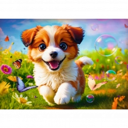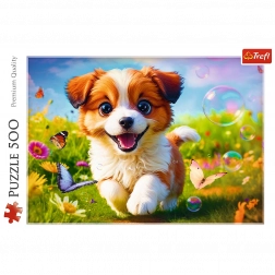 Puzzle Cățelul vesel sunt alcătuite din 500 de piese și prezintă un câine drăguț. Puzzle-ul asamblat are dimensiunile 480x340 mm.