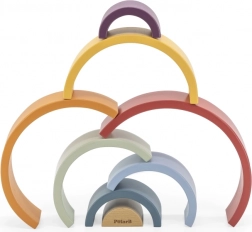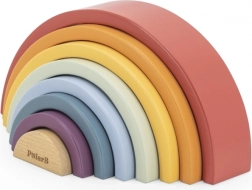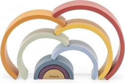 Curcubeul din lemn PolarB este un puzzle de design care crește odată cu copilul. Cele șapte arcuri colorate și piesa interioară cu logo permit construirea de curcubeie, poduri, țarcuri, piste pentru mașinuțe sau turnuri de echilibru. Jocul dezvoltă natural imaginația, răbdarea și orientarea spațială.
