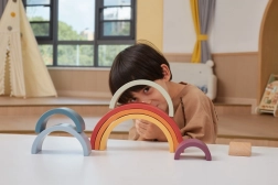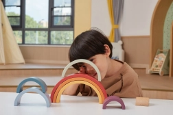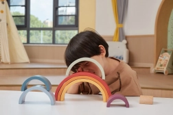 Execuția sigură, fără muchii ascuțite, și lemnul durabil, atent șlefuit, asigură o prindere plăcută și o durată de viață îndelungată. Culorile netoxice sunt blânde cu copiii și cu natura. Curcubeul este un instrument valoros al abordării montessori și, totodată, o decorațiune stilată pentru camera copilului.