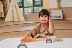 7 arcuri și o piesă interioară invită la construirea de curcubeie, tuneluri și poduri. Fiecare combinație stimulează imaginația și gândirea logică.