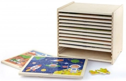 Descoperă bucuria învățării prin joc cu puzzle-urile din lemn Viga. Setul include 12 puzzle-uri în ramă, fiecare cu 24 de piese, și un suport practic din lemn. Susține coordonarea mână–ochi, gândirea logică și imaginația copiilor. Culori sigure, lemn rezistent și ilustrații adorabile îi motivează pe cei mici la răbdare și concentrare.