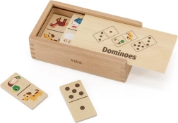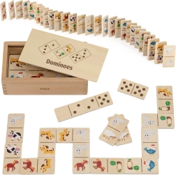 Domino-ul din lemn 2în1 VIGA aduce dublă porție de distracție și învățare într-un singur set. Copiii pot alterna între jocul cu puncte clasice și jocul de asociere a animalelor, ceea ce susține învățarea naturală și menține atenția. Datorită execuției robuste din lemn, setul este durabil și potrivit pentru joacă zilnică acasă sau în deplasare.