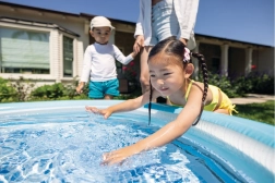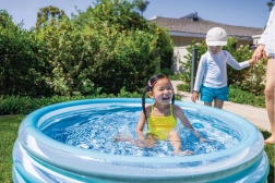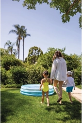 Pur și simplu o umflați, o umpleți cu apă și distracția poate începe. Datorită dimensiunilor compacte, piscina este potrivită pentru grădini mai mici și este ușor de depozitat și transportat.