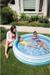 Faceți-le copiilor o bucurie cu joaca de vară în apă! Această piscină gonflabilă, cu diametrul de 147 cm și înălțimea de 33 cm, oferă un loc sigur de bălăceală pentru micii iubitori de apă de la 2 ani. Datorită celor trei camere de aer, pardoselii moi antiderapante și instalării ușoare, este ideală pentru grădină și curte.