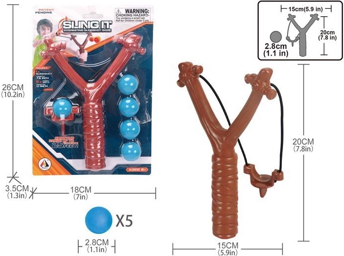 Praștia noastră cu cinci mingi este o alegere excelentă pentru copii și adulți care iubesc activitățile outdoor. Praștia are dimensiuni compacte de 15x20 cm, ceea ce permite o manipulare și portabilitate ușoară. Mingiile cu un diametru de 2,8 cm sunt perfecte pentru tiri precise.