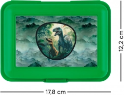 Cutia de plastic pentru gustare cu imagine de dinozaur nu este doar funcțională, dar și stilată. Cu închidere tradițională, păstrează mâncarea în siguranță la interior. Divizorul detașabil permite o organizare ușoară și separarea mâncării.