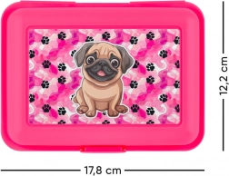 Cutie roz practică pentru gustare cu ilustrație de câine, ideală pentru transportul organizat al preparatelor tale preferate la școală sau la picnicuri. Portabil și atractiv design.