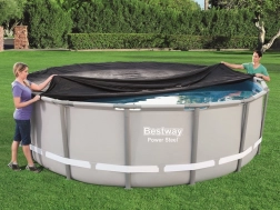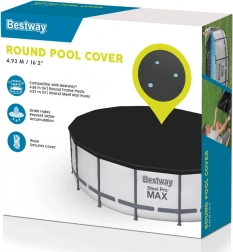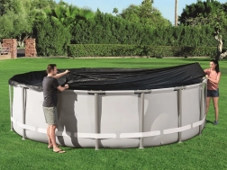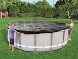Cea mai bună protecție pentru piscina cu structură: Această prelată universală de la Bestway oferă piscinei dumneavoastră protecție de încredere împotriva insectelor, păsărilor, frunzelor și ploilor ușoare.