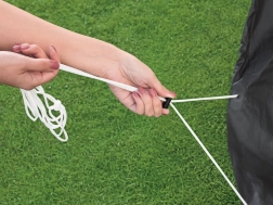 Fixarea simplă cu ajutorul corzilor incluse vă asigură o acoperire fermă și sigură a piscinei.
