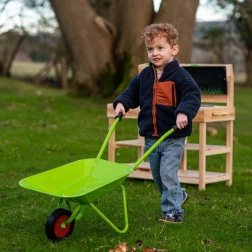 Datorită designului ergonomic cu două mânere și o roată de cauciuc solidă, roaba este ușor de manevrat chiar și pentru copiii mici.