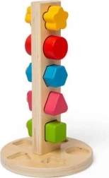 Această jucărie educativă isteață îmbină distracția cu învățarea. Copiii pot înșuruba formele colorate pe țăruș, le pot sorta după contur pe bază și își pot exersa gândirea logică și percepția spațială. Construcția durabilă din lemn și culorile sigure asigură o durată lungă de viață și joacă fără griji.