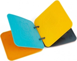 Această cărticică din silicon este un instrument perfect pentru învățare distractivă atât în apă, cât și în afara ei. Susține excelent dezvoltarea cognitivă a copiilor și îi ajută să învețe să recunoască diferite forme și culori. Datorită paginilor texturate, oferă stimulare senzorială care contribuie la dezvoltarea motricității fine. Cărticica este realizată din material durabil și sustenabil, se întreține ușor și respectă toate normele europene de siguranță.