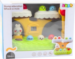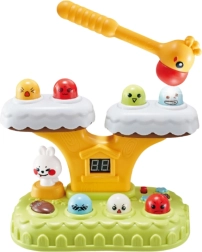 Jocul Whack‑a‑Mole aduce distracția clasică „de lovire” într‑o prezentare modernă. Figurine colorate apar dintr‑un trunchi de copac, copilul le lovește cu un ciocănel moale și își urmărește progresul pe contorul digital de puncte. 20 de melodii integrate și efecte luminoase creează o atmosferă veselă, iar iepurășul rotativ intensifică interacțiunea.
