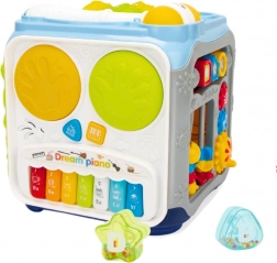 Pe fiecare față veți găsi mini pian muzical, tobe, panouri mobile și un minijoc de îndemânare. Accesorii precum piese culisante, mărgele colorate și roți dințate rotative antrenează în mod natural precizia mișcărilor, răbdarea și dezvoltarea abilităților cognitive. Designul colorat și elementele interactive mențin atenția copiilor și le stimulează curiozitatea.