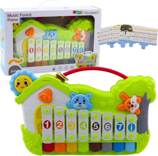Pianina muzicală de pădure îmbină farmecul xilofonului clasic cu clapele pianinei, astfel încât copiii își pot crea propriile melodii și își pot îmbunătăți coordonarea mișcărilor. Vor fi cuceriți de motivul adorabil din pădure cu animăluțe și de clapele colorate, numerotate, care facilitează învățarea notelor și a ritmului de bază.