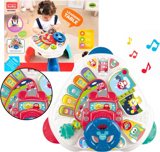 Masa educațională interactivă oferă copiilor oportunitatea de a dezvolta abilități manuale, cognitive și muzicale. Conține o tastatură cu butoane colorate ce deschide lumea primelor melodii și sunete.