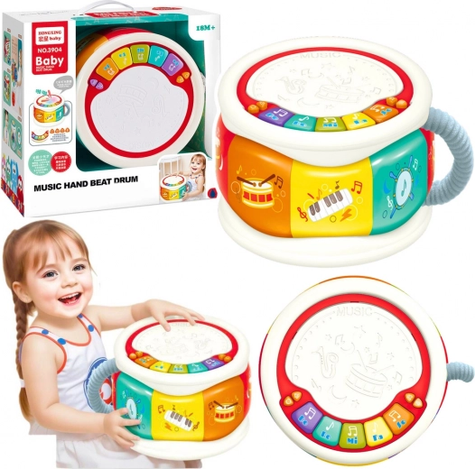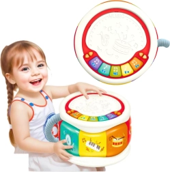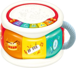 Distracție plină de muzică: Tamburul este echipat cu o clapieră în diverse culori, care permite redarea diferitelor tonuri și emite sunete vesele. În plus, tamburul mare le permite copiilor să învețe ritmul și să creeze propriile lor melodii lovind suprafața tamburului.
