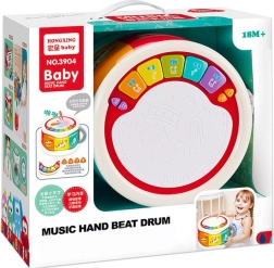 Siguranță și confort: Construcția sigură și materialele prietenoase cu copiii asigură un joc de lungă durată și confortabil. Modelul are, de asemenea, un mâner de pluș care facilitează transportul tamburului și asigură o prindere confortabilă pentru mâinile mici.
