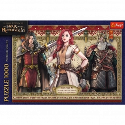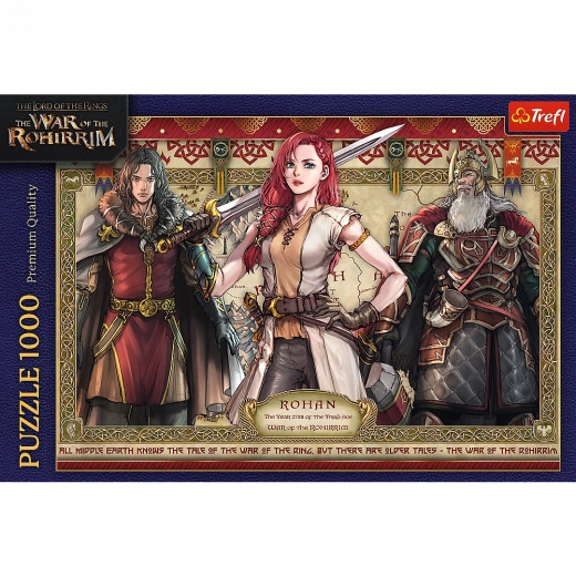 Puzzle distractiv Stăpânul Inelelor: Războiul Rohirrimilor cu 1000 de piese, care prezintă personaje dintr-un anime inspirat de opera lui J.R.R. Tolkien. După asamblare, creează o imagine captivantă cu dimensiunile de 683x480 mm.