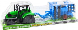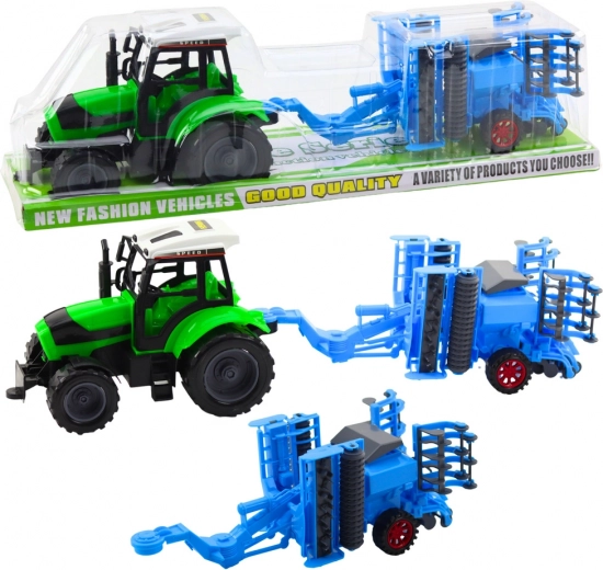 Setul include tractor, grapă cu discuri și ambalaj original – ideal ca dar pentru micii fermieri.