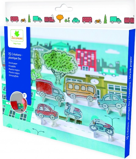 Creează-ți propria colecție de mijloace de transport din folia magică termocontractabilă. Copiii copiază motivul pe partea mată a foliei după șablon, colorează cu markere sau creioane, decupează și coc scurt în cuptor. În timpul coacerii, imaginea se micșorează, se întărește și capătă un luciu frumos – perfectă ca pandantiv, magnet sau decorațiune.