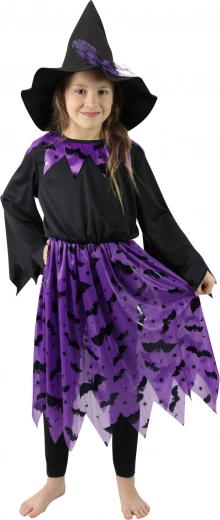 Căutați costumul perfect pentru mica dumneavoastră vrăjitoare? Acest costum de vrăjitoare pentru copii aduce magie și fantezie în fiecare joc. Costumul include rochie și pălărie ascuțită cu fundă, toate în un design atractiv negru-violet decorat cu modele de lilieci. Destinat fetelor de mărimea M, adică cu vârsta între 6-8 ani (117-128 cm). Costumul este ușor și confortabil, permițând libertatea de mișcare.