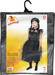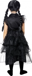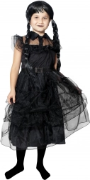 Rochia gotică neagră, cu straturi bogate și volănașe, creează un aspect fermecător, ușor misterios, care se remarcă la orice petrecere. Acest costum pentru fete, ideal pentru Halloween și carnaval, este perfect pentru jocuri de rol, serbări școlare și petreceri tematice.