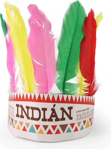 Transformă-te în câteva clipe într-un adevărat indian! Această bentiță de indian stilată cu imprimeu cehesc și pene multicolore este accesoriul ideal pentru un costum de carnaval, tabără sau petrecere western. Ușoară și confortabilă la purtare; culorile penelor pot varia.