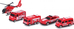 Patru vehicule de pompieri diferite, un elicopter și o figurină de pompier le permit copiilor să creeze misiuni de salvare palpitante și să-și dezvolte imaginația.