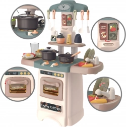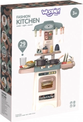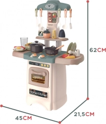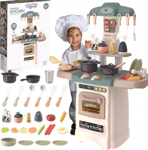 Bucătăria stilată pentru copii WOOPIE îi va încânta pe toți micii bucătari. Oferă efecte luminoase și sonore ale plitei, robinet funcțional cu circuit de apă reală, cuptor cu ușă care se deschide și o serie de elemente mobile. Pachetul include un set bogat de 29 de accesorii de bucătărie, care stimulează creativitatea, jocul de rol și dezvoltarea motricității fine.