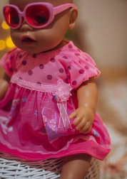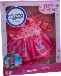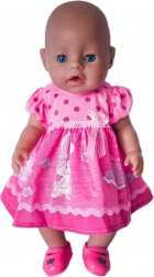 Rochița roz stilată cu buline și motiv cu iepuraș oferă păpușii un aspect deosebit și stimulează fantezia jucăușă a copiilor.