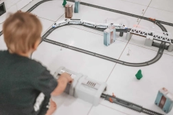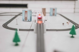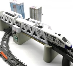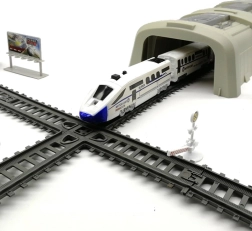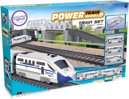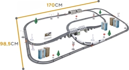 Acest circuit feroviar electric modern WOOPIE oferă copiilor ore îndelungate de distracție și învățare. Garnitura de tip Pendolino cu cinci vagoane gonește pe traseul de 9,14 m, luminează drumul cu o lumină roșie și, datorită reglării vitezei, se adaptează ușor ritmului de joc. O atracție excelentă este podul basculant acționat prin buton și tunelul decorativ, care adaugă tensiune și realism călătoriei.