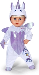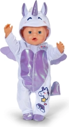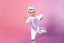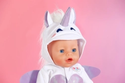 Costum fermecător de unicorn pentru păpușă BABY born le permite copiilor să trimită păpușile lor de 43 cm în aventuri de basm. Se remarcă prin accente sclipitoare și motive curcubeu.