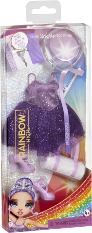 Setul de îmbrăcăminte pentru păpuși Rainbow High oferă o gamă largă de stiluri care vor atrage orice mic designer de modă. Imaginați-vă păpușa în stil de balerină, pregătită pentru o zi la piscină sau gata de petrecere. Posibilitățile sunt nelimitate, incluzând patinaj sau susținerea echipei sportive.