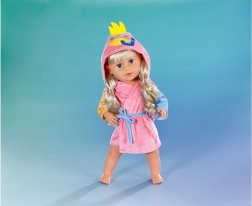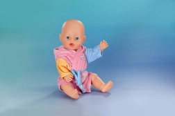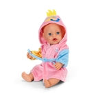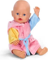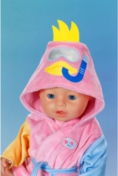 Acest halat drăgălaș pentru păpușile BABY born de 43 cm oferă confort maxim după baie și în timpul jocului. Finisajul roz cu mâneci colorate și gluga cu rățușcă atrag privirea din prima și stimulează imaginația copiilor în scenarii de îngrijire.
