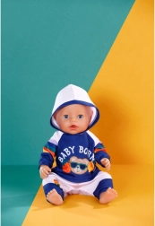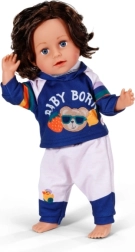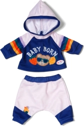 Oferă păpușii tale stil și confort cu acest trening moale pentru păpuși de 43 cm. Hanoracul cu glugă, mâneci în dungi curcubeu și motivul amuzant BABY BORN se combină grozav cu pantalonii comozi. Ținuta este concepută astfel încât copiii să o poată îmbrăca și dezbrăca cu ușurință.
