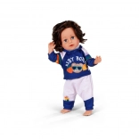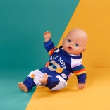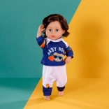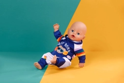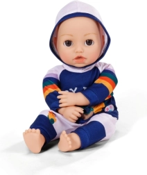 Un trening stilat pentru păpuși de 43 cm aduce joaca la un nou nivel. Setul include hanorac cu glugă și pantaloni în combinație albastru‑alb, cu dungi jucăușe în culorile curcubeului și imprimeu BABY BORN. Ținuta se îmbracă și se dezbracă ușor, ideală pentru role-play, dezvoltarea motricității fine și stimularea imaginației copiilor de la 3 ani.