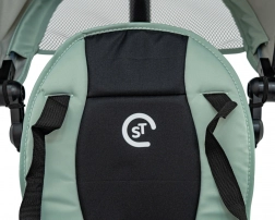 Tricicleta este echipată cu centuri de siguranță cu prindere în trei puncte, barieră de protecție și un scaun mare. Datorită acestor caracteristici, copilul dumneavoastră va fi în siguranță și confortabil în timpul plimbării.