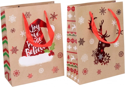 Pungă cadou de Crăciun stilată, mărimea S, care ușurează ambalarea și oferă surprizelor tale o notă festivă. Ideală pentru cadouri mici, cu mânere rezistente și hârtie de calitate pentru ambalare rapidă și elegantă și un aspect reprezentativ.