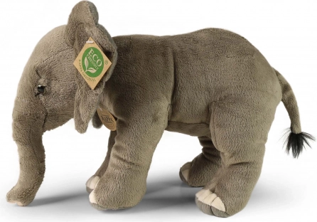 Forma detaliată a urechilor, trompei și cozii, combinată cu cusături atent lucrate, conferă jucăriei un aspect viu.