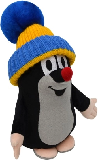 Jucăria de pluș Cârtița cu căciuliță albastru-galbenă, cu înălțimea de 24 cm, este inspirată de popularul serial ceh „Krteček”. Fabricată din material moale și plăcut, asigură confort atât la joacă, cât și în timpul odihnei. Combinația dintre designul adorabil și execuția de calitate face din această jucărie o decorațiune ideală pentru camera copilului.